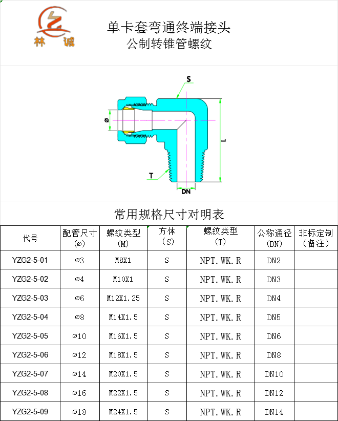 單卡套彎通終端接頭